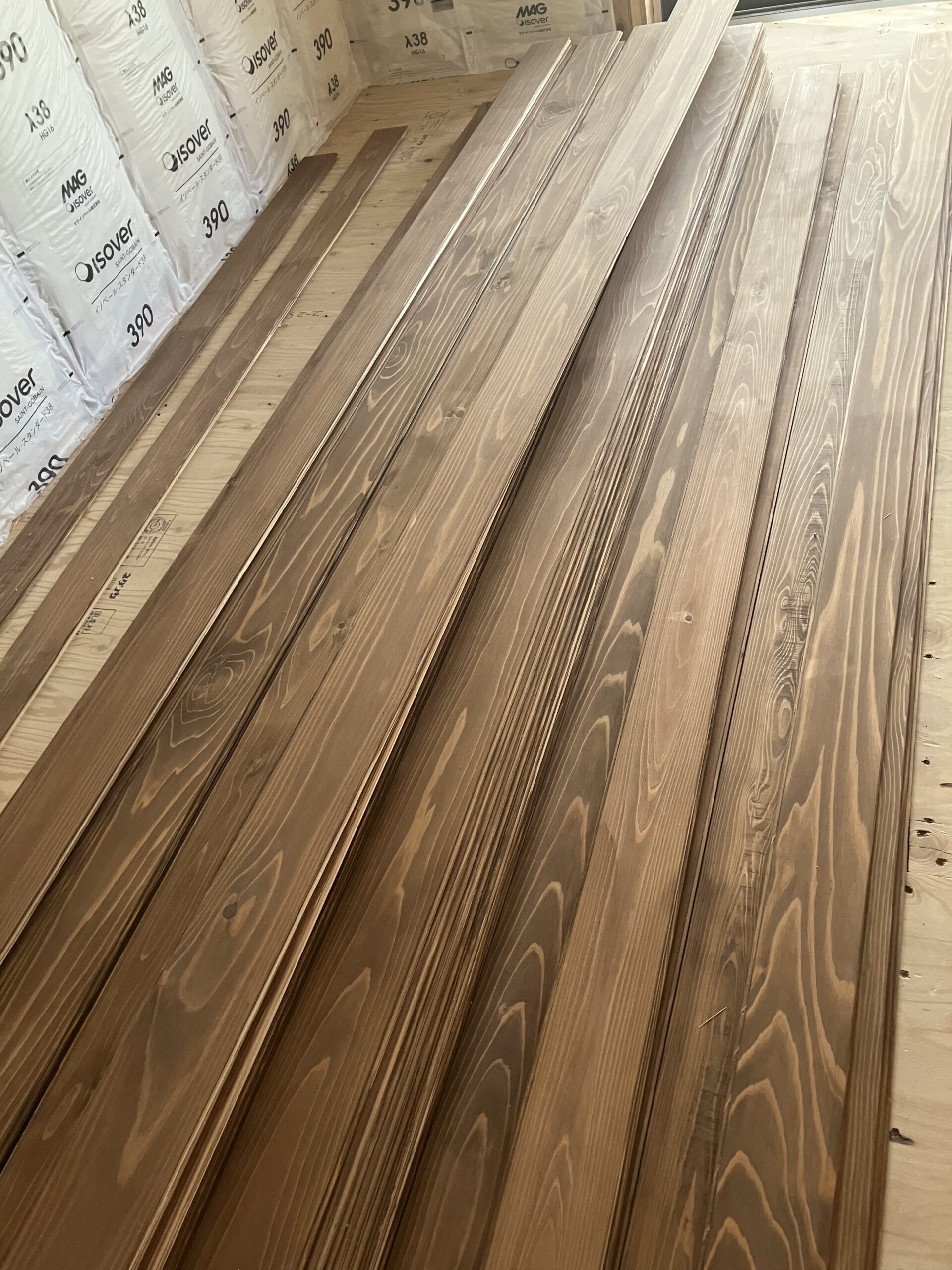 仕上げの床材が1回目の塗装済みで
